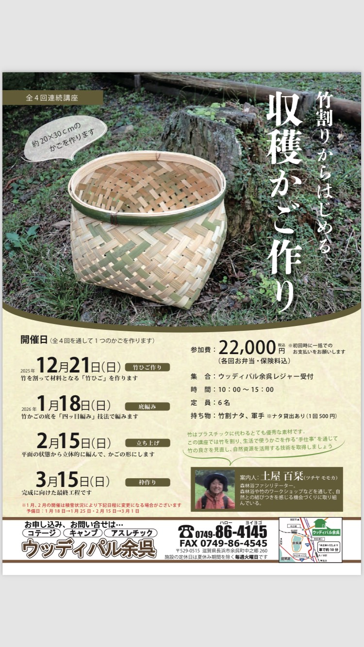 生活で使うかごを作る「手仕事」を通して、竹の良さを見直し、自然資源を活用する技術を習得しましょう!